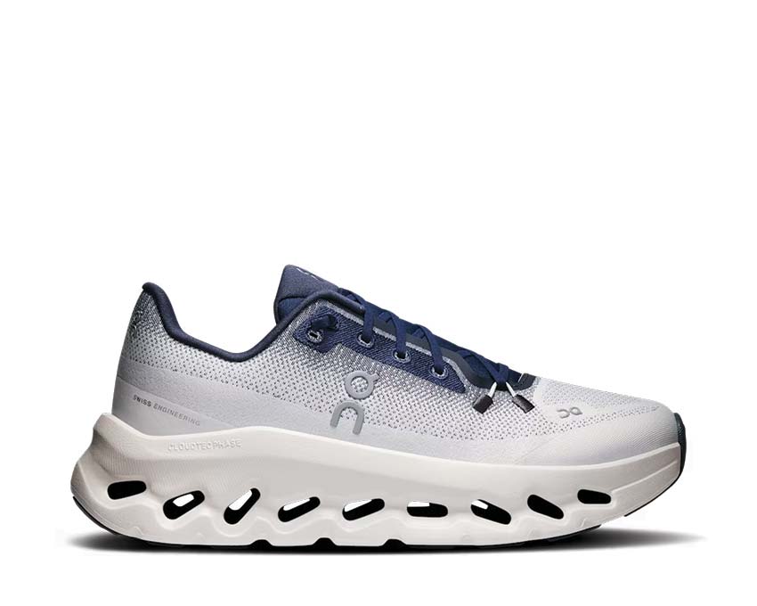 La tomaia in mesh tecnico, realizzata in poliestere riciclato, utilizza il metodo dope dye per ridurre il consumo d’acqua fino al 90%.